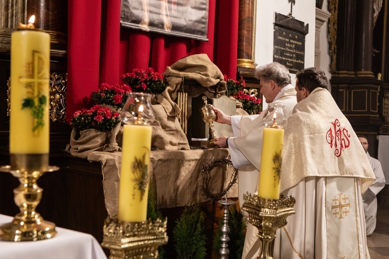Po Komunii świętej Najświętszy Sakrament został przeniesiony do ołtarza adoracji – w tym roku znajdującym się w ołtarzu św. Franciszka.