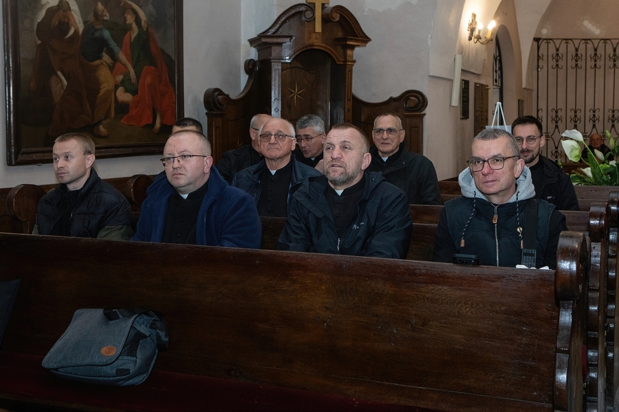 Podczas pielgrzymki kapłani wysłuchali konferencji ks. prof. dra hab. Marka Chmielewskiego pt. „Kim jestem? Tożsamość i duchowość księdza diecezjalnego”.