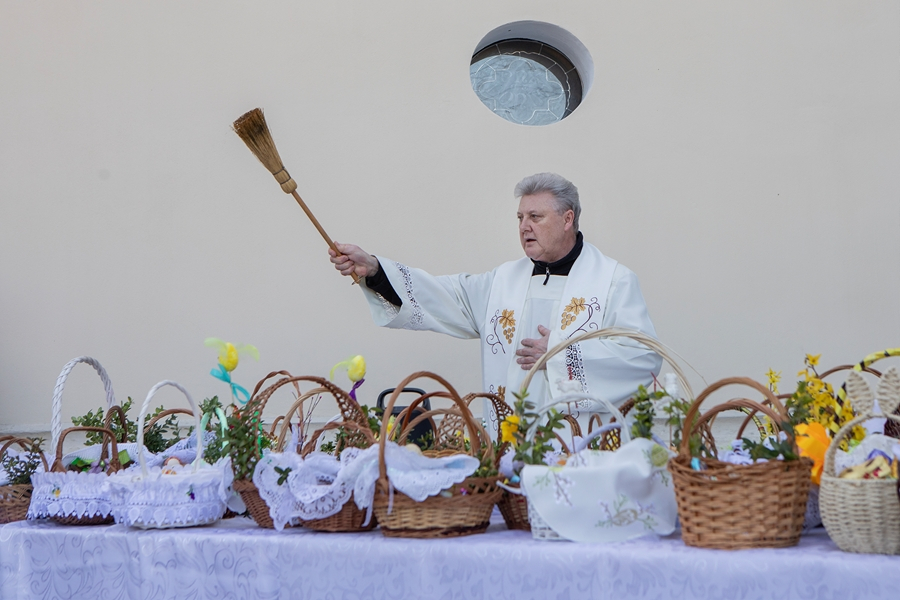 Wierni przyszli z koszykami wypełnionymi pokarmem do święcenia. Jak mówią, tu w klasztorze, przed świątynią, obrzęd ten ma szczególny charakter. Wielki mur odgradzający od zgiełku i szumu miasta, sprawia wrażenie, że sprawy doczesne są gdzieś w oddali.
