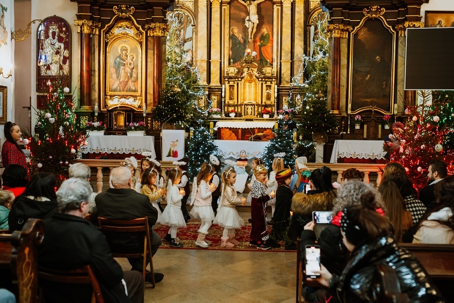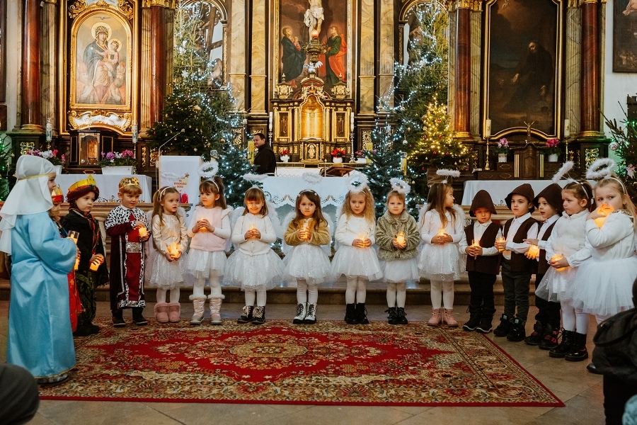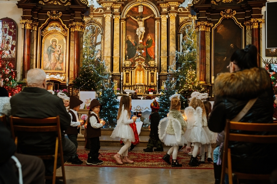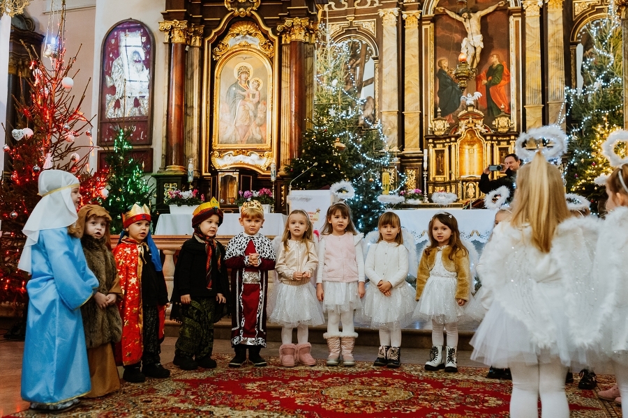 W minioną niedzielę, w Dzień Babci, dzieci z grupy „ SmerfY” z Przedszkola nr 2 w Pińczowie po Msze św. o godz. 10.00, zaprezentowały „Jasełka” pod tytułem „W drodze do Betlejem”. To był piękny prezent od najmłodszych, zarówno dla naszych Drogich Babć i Dziadków, jak i dla nas wszystkich.