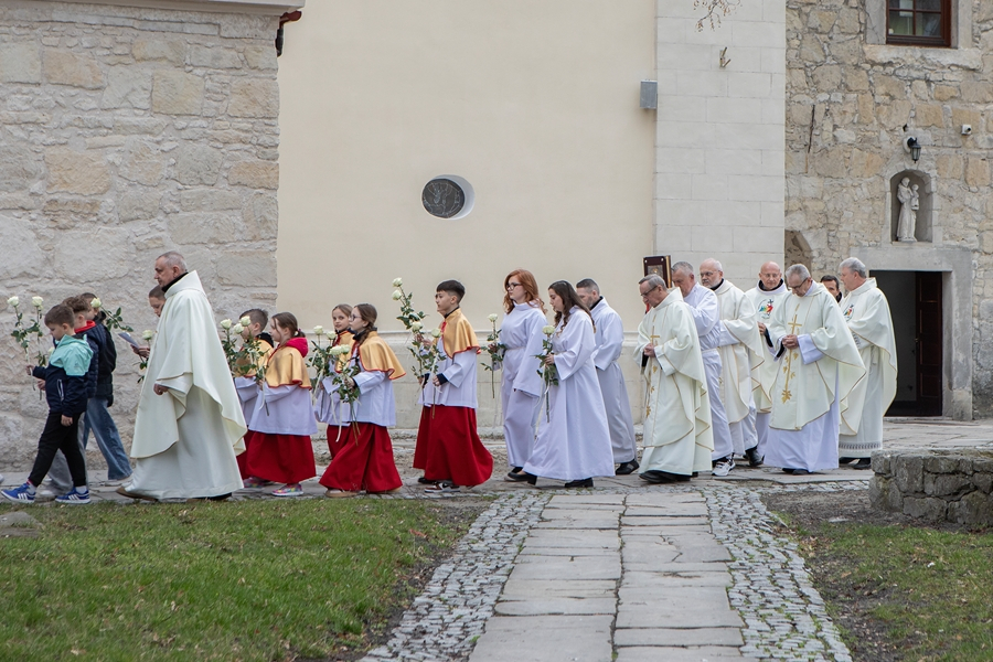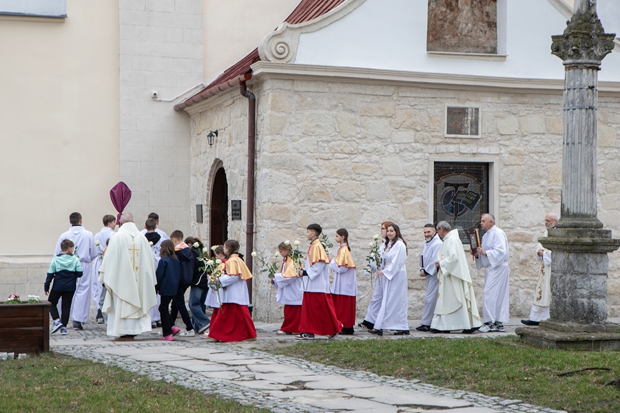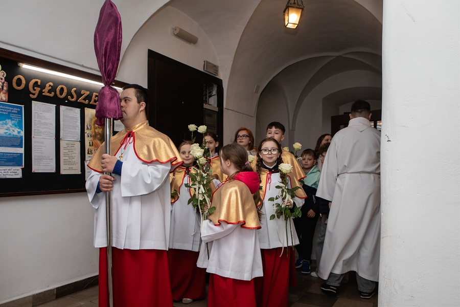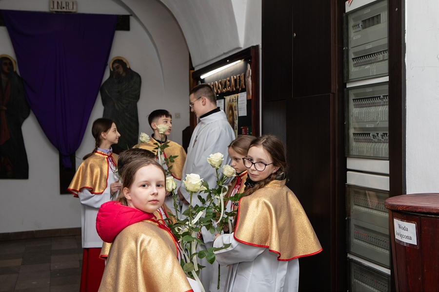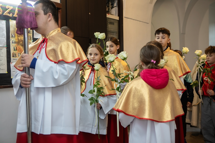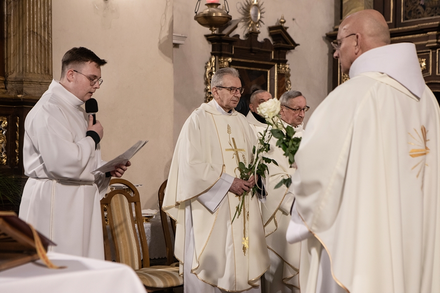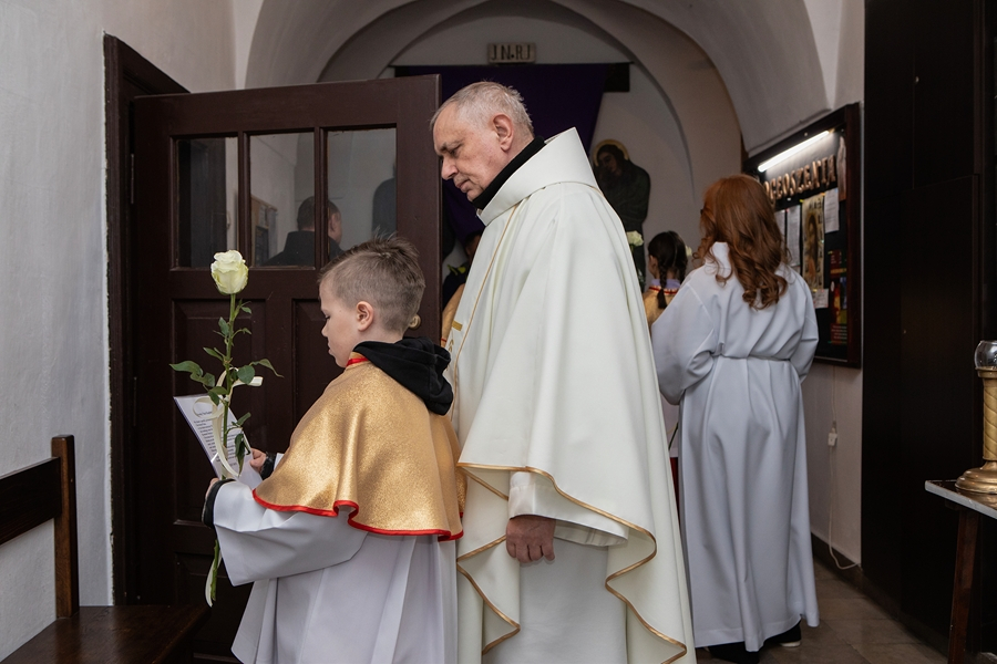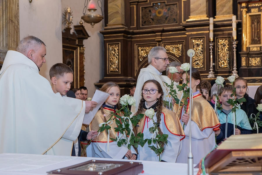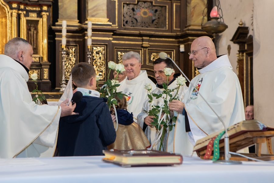 Na początku Mszy, kapłani otrzymali życzenia i białe róże od dzieci przygotowujących się do I Komunii Świętej, lektorów i wspólnot działających w Parafii.