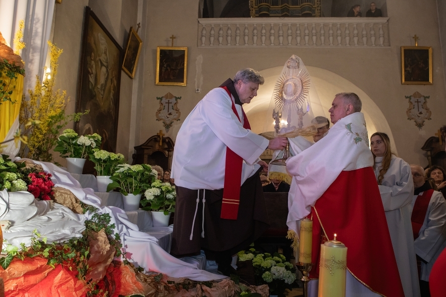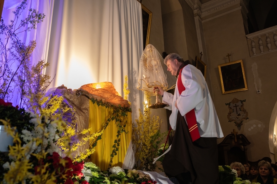 Na zakończenie liturgii Wielkiego Piątku przeniesiono Najświętszy Sakrament do Grobu Pańskiego, gdzie wierni adorowali Go do późnych godzin.